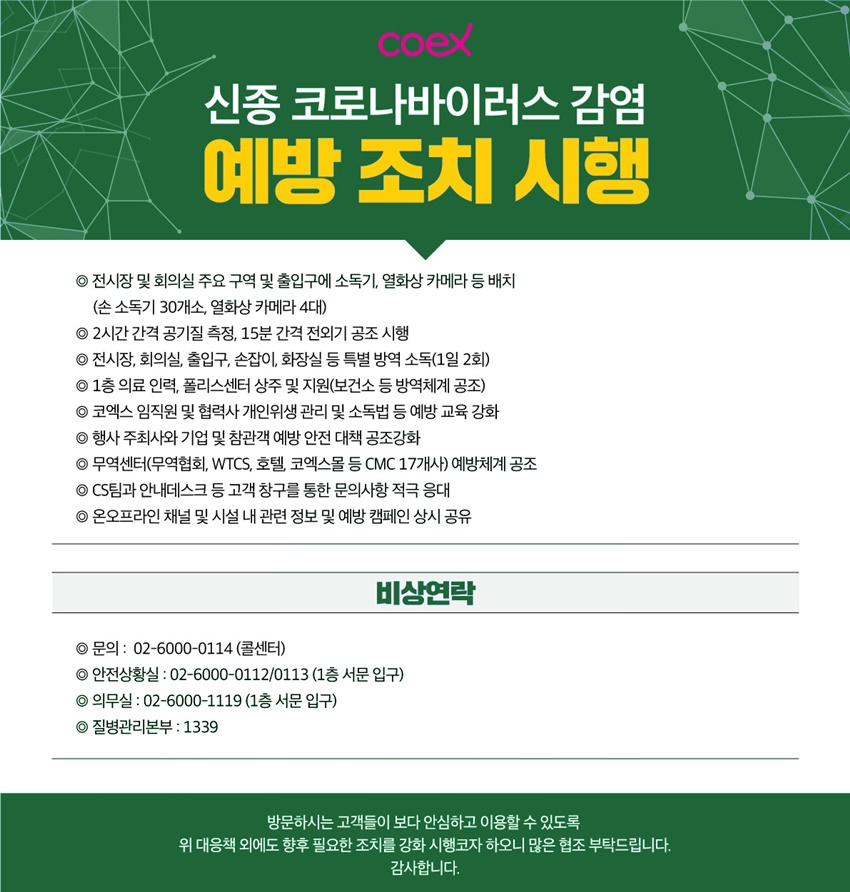 코엑스의 안전을 위한 노력과 함께, 저희 종로유학원에서도 자체적인 사회적 거리두기를 실천하고,